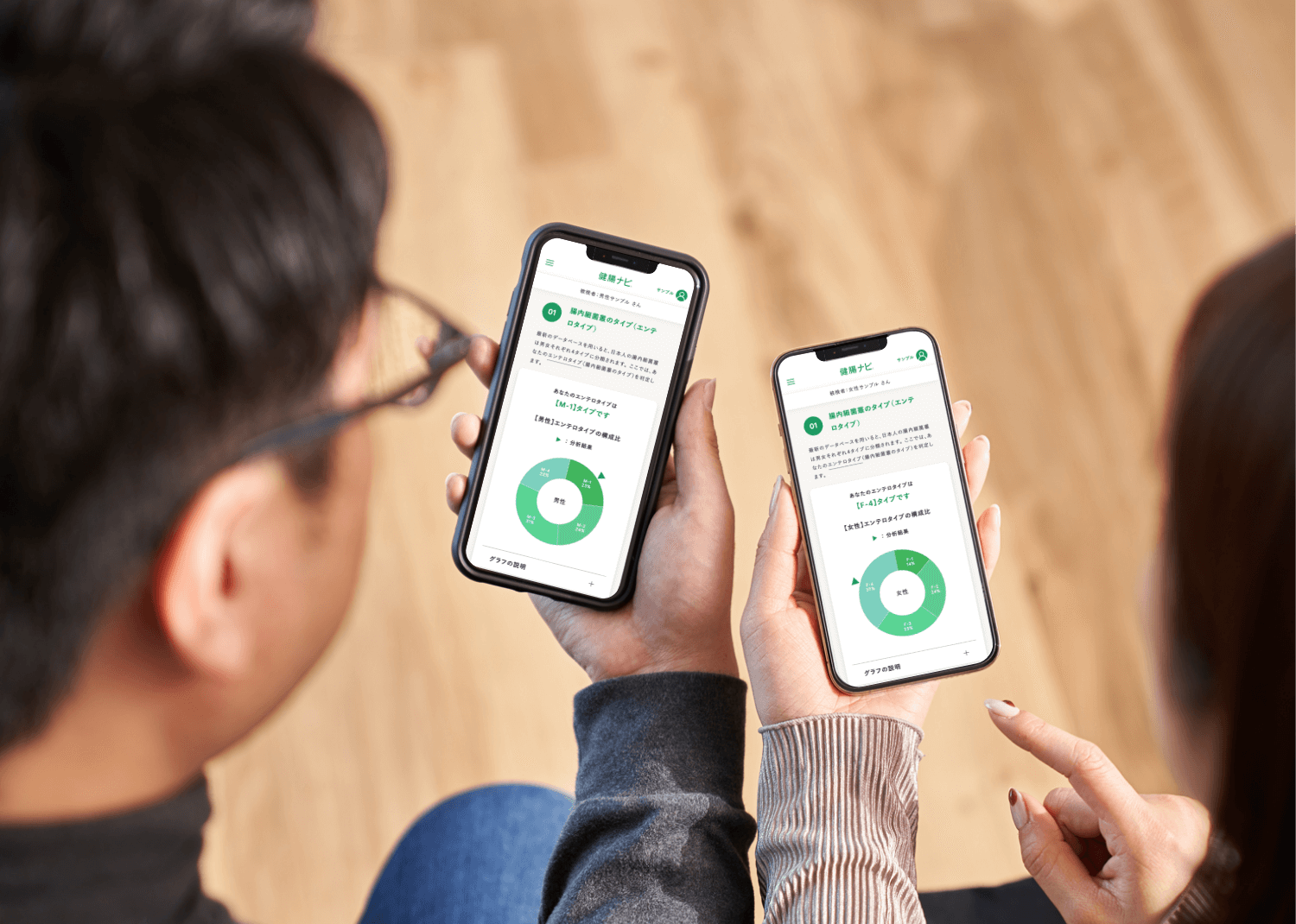 当社の研究の結果、腸内細菌叢には男女で異なる特徴があり、病気と関連のある腸内細菌も男女で一部異なることが明らかとなっています。そのため腸内細菌叢の分析・評価には被検者様の性別を考慮する必要があります。健腸ナビでは、すべてのレポートコンテンツについて男女別に分析を行い、より精度の高い情報をお届けします。